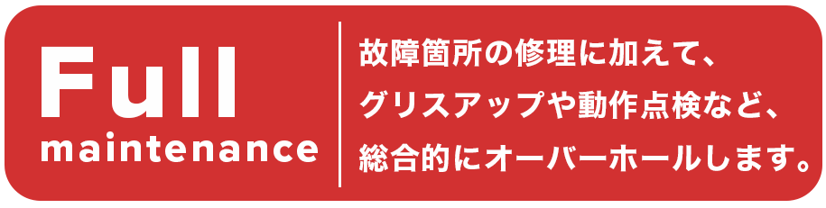 お客様ご指摘の不具合以外の症状が診られた場合、限定修理(当初のご要望箇所のみの修理)と、総合修理(不具合箇所すべての修理)の2種類の見積りをお出しする場合があります。